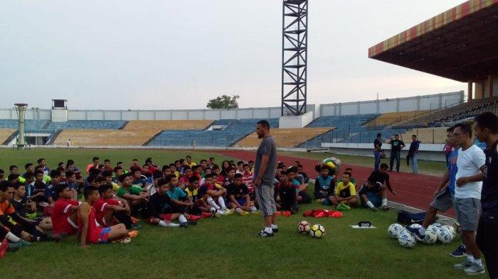 TRIBUNPEKANBARU.COM - Latihan perdana PSPS Riau dan sekalian seleksi pemain lokal, Selasa (14/5) sore di Stadion Kaharuddin Nasution, Pekanbaru dihadiri Bona Simanjuntak Mantan Pelatih PSIM Jogyakarta.