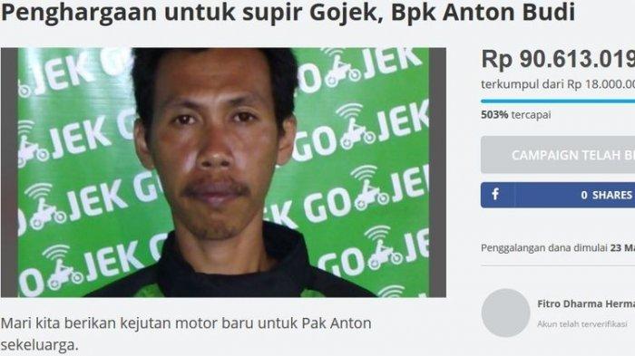 TRIBUNPEKANBARU.COM - Anton Budi (39) pengemudi ojek online yang tetap mengantarkan pesanan makanan meskipun motornya hilang dicuri di bilangan Kelapa Gading, Jakarta Utara, Rabu (22/5/2019) silam, kini ketiban pulung.
