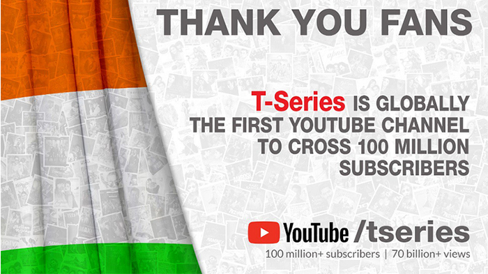 "Kanal YouTube terbesar, T-Series telah melampaui capaian YouTube lainnya dengan menjadi satu-satunya (kanal) yang memiliki #100MillionSubscriber. Terima kasih telah menjadi bagian dari perjalanan ini. T-Series membuat India bangga," ujar pengelola kanal itu.