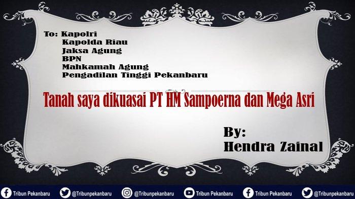 Seorang warga Pekanbaru, Hendra Zainal menyurati sejumlah lembaga untuk memberitahukan tanahnya dikuasai sepihak oleh PT HM Sampoerna dan Mega Asri.