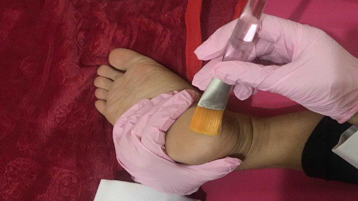 Dia menjelaskan, body peeling menggunakan cairan kimia yang dioleskan pada daerah kaki yang dikeluhkan. Kemudian dibiarkan selama 10-15 detik setelah pengolesan.