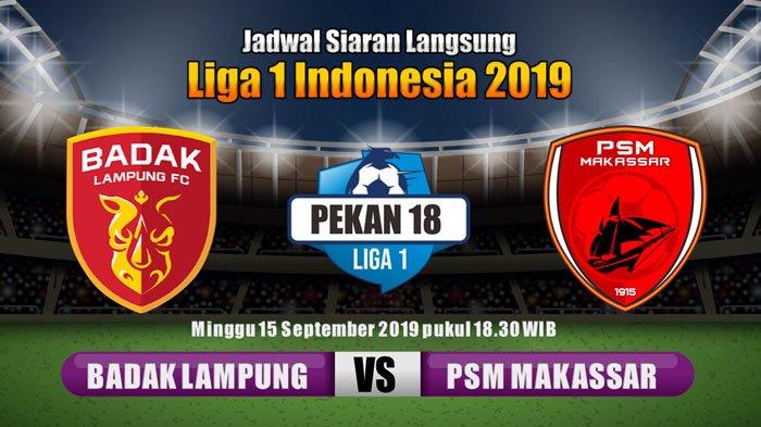 TRIBUNPEKANBARU.COM- Saksikan pertandingan lanjutan di Liga 1 2019 yang akan mempertemukan Badak Lampung vs PSM Makassar, Minggu (15/9/2019).