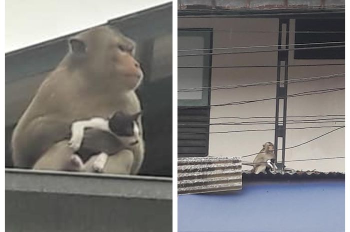 Monyet Culik dan Adopsi Kucing Sebagai Anaknya, Dibawa Kemana Pergi dan Dikasih Makan Pisang