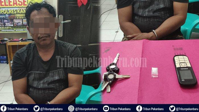 Pria 50 Tahun di Riau Jadi Pengedar Narkoba, Dibuntuti dan Ditangkap Polisi Saat akan Transaksi. (Tribunpekanbaru.com/Ikhwanul Rubby)