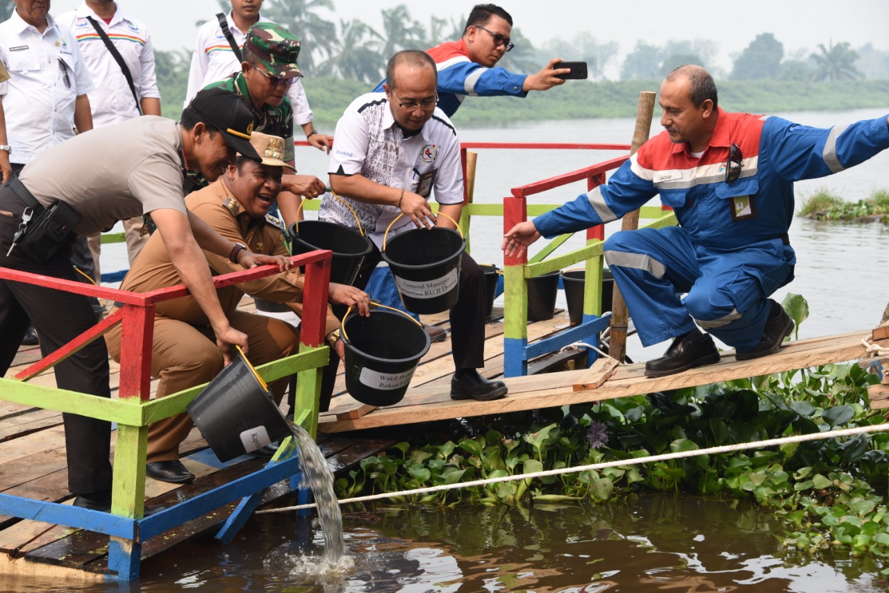 Menjawab tantangan tersebut, PT Pertamina (Persero) Refinery Unit (RU) II jalankan program penebaran benih ikan di salah satu bagian Sungai Rokan yang terletak di Desa Teluk Berembun, Kecamatan Tanah Putih, Kabupaten Rokan Hilir, Selasa (10/09/19). Kegiatan dipimpin langsung oleh General Manager Pertamina RU II M. Dharmariza dan dihadiri pula oleh Wakil Bupati Rokan Hilir Jamiluddin serta segenap jajaran Forum Komunikasi Pimpinan Daerah (Forkopimda) Kabupaten Rokan Hilir termasuk perwakilan Dinas Kelautan dan Perikanan Provinsi Riau dan Dinas Lingkungan Hidup dan Kehutanan Provinsi Riau.