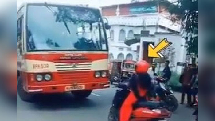 Seorang pengendara motor di Kerala, India, dan menuai pujian setelah menghalangi bus yang ketahuan melawan arus.