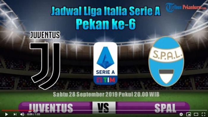 TRIBUNPEKANBARU.COM - Saksikan live streaming laga lanjutan pekan ke enam Liga Italia Juventus vs SPAL, Sabtu (28/9/2019) pukul 20.00 WIB.