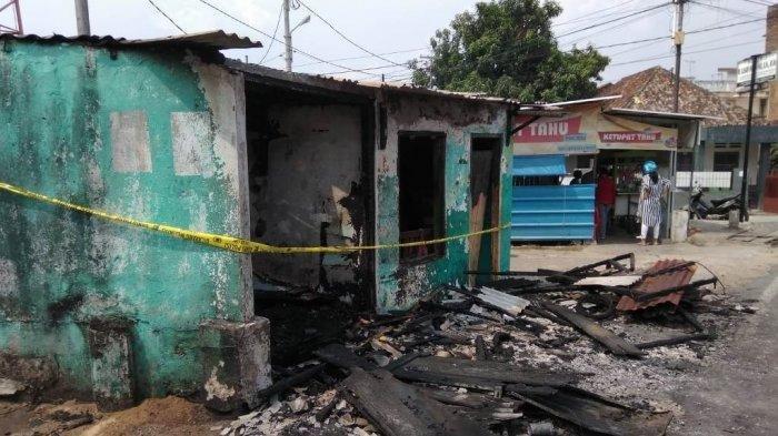 Kios tambal ban yang juga tempat usaha pangkas rambut itu hangus dilalap si jago merah. Seluruh bagian bangunan itu terbakar.
