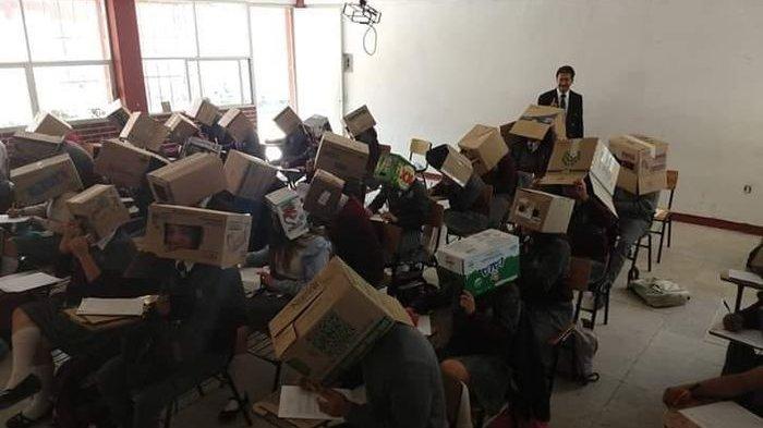 Agar Tak Saling Contek, Sekolah Suruh Siswa Tutup Kepala Pakai Kardus, 'Tidak Ada Paksaan Apapun'