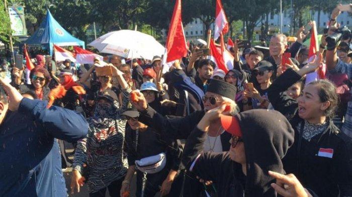 TRIBUNPEKANBARU.COM - Massa yang menamakan diri "Jakarta Bergerak, Suara Rakyat Bersatu" menggelar aksi teatrikal lempar tomat sebagai bentuk kekecewaan terhadap Gubernur DKI Jakarta Anies Baswedan, Selasa (14/1/2020).