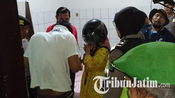 Ann (19) berusaha bersembunyi, saat petugas gabungan Polisi, TNI dan Satpol PP mengetuk kamarnya menginap.