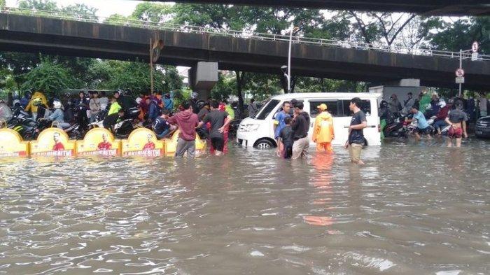 TRIBUNPEKANBARU.COM - Hujan dengan intensitas rendah hingga sedang mengguyur Jakarta dan sekitarnya dini hari hingga pagi, mengakibatkan banjir dan genangan air di sejumlah wilayah pada Selasa (25/2/2020) pagi. Ketinggian air bervariasi.