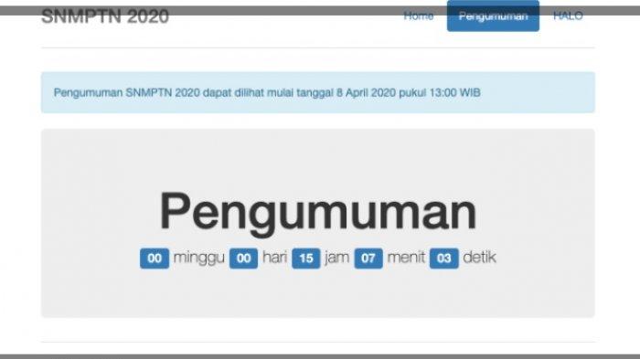 Hasil Seleksi Nasional Masuk Perguruan Tinggi Negeri ( SNMPTN ) 2020 diumumkan hari ini Rabu 8 April 2020 pukul 13.00 WIB.