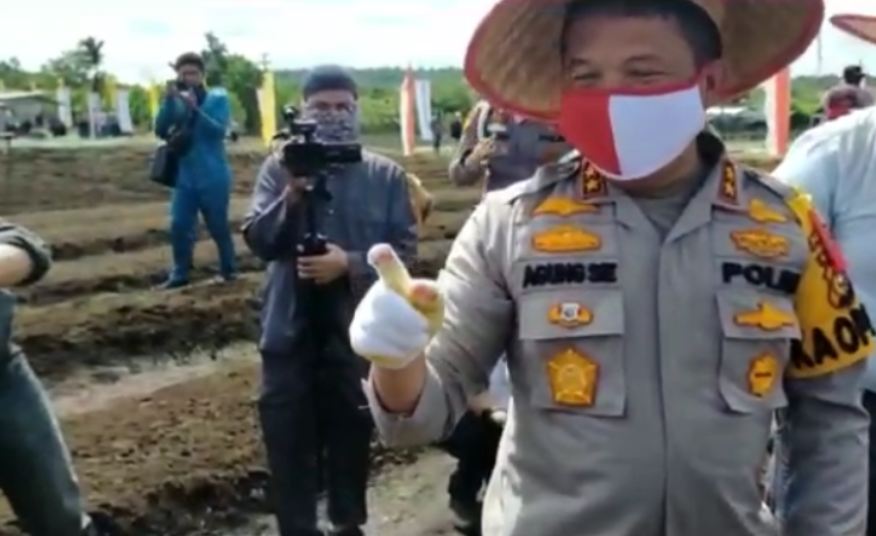 Video: Pakai Topi Caping, Kapolda Riau Tanam Bibit Tanaman Palawija Ditengah Covid-19