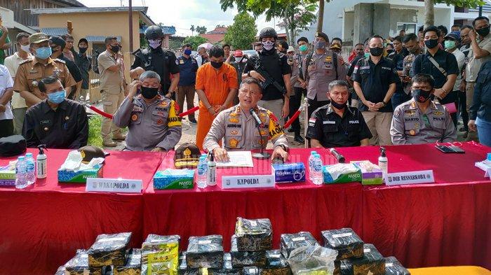 Direktur Reserse Narkoba, Kombes Pol Suhirman memimpin penangkapan pria inisial AK (35), warga Marpoyan Dumai, Pekanbaru, dengan barang bukti seberat 24 kilogram.