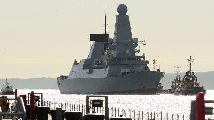 Namun Kementerian Pertahanan Inggris mengungkapkan, kapal itu menghabiskan hari-harinya dengan menjalani perawatan di Pelabuhan Portsmouth, ketimbang menjalankan tugas negara.