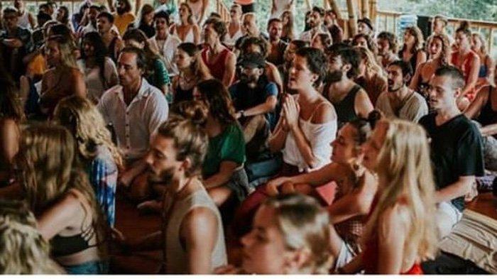 TRIBUNPEKANBARU.COM- Foto dan video yang memperlihatkan puluhan warga negara asing (WNA) menggelar yoga di House of Om Bali, Jalan Raya Bona, Kelurahan Bitera, Gianyar, Bali.