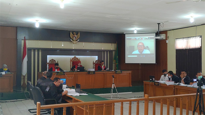 Sama seperti saksi pertama, Rhemon Kamil, Heri bersaksi lewat video conference.
