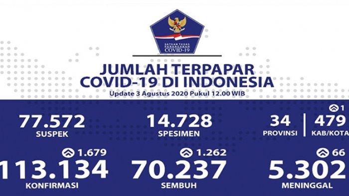 Sementara itu secara nasional terdapat penambahan kasus baru Covid-19 sebanyak 1.679 orang.