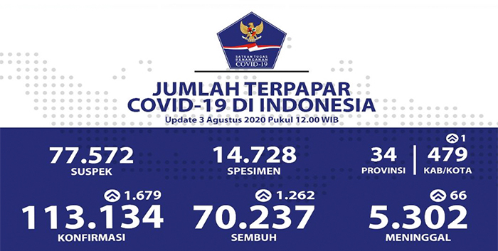 Dari jumlah keseluruhan itu pula terdapat penambahan pasien sembuh sebanyak 1.262 orang, sehingga totalnya kini menjadi 70.237 orang.