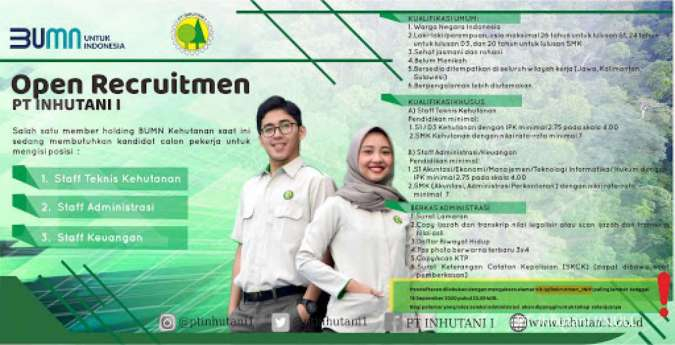 PT. Inhutani 1 merupakan salah satu BUMN di Indonesia. Bulan ini, PT. Inhutani I membuka lowongan kerja bagi berbagai jenjang pendidikan.