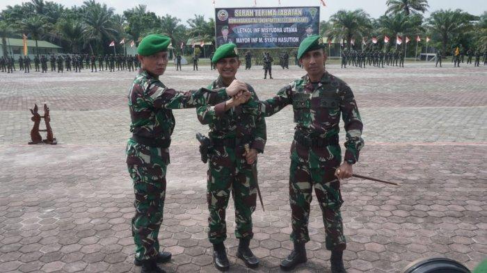 Serah terima jabatan dilakukan antara pejabat lama Letkol Inf Wisyudha Utama ke pejabat Baru Mayor Inf M.Syaf’i Nasution.