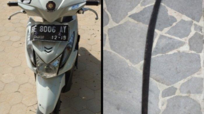Keduanya mengendarai sepeda motor matik, HD memboncengkan rekannya.