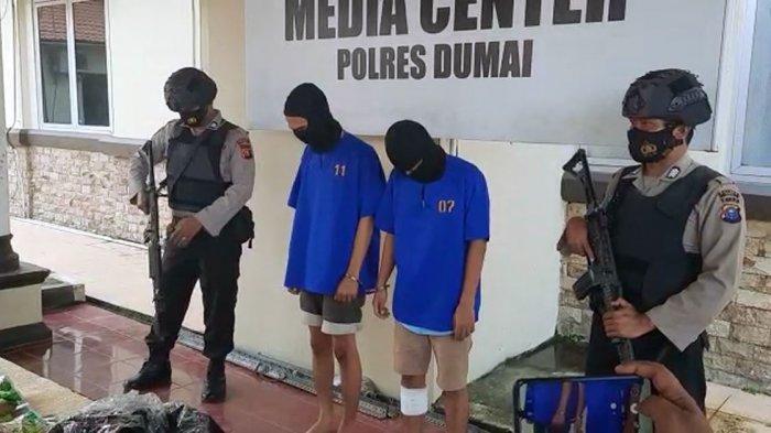 Melihat hal tesebut, tambahnya, dilakukan pengejaran langsung oleh Tim Opsnal Sat Res Narkoba Polres Dumai, sehingga menyebabkan kedua tersangka jatuh dari sepeda motor.