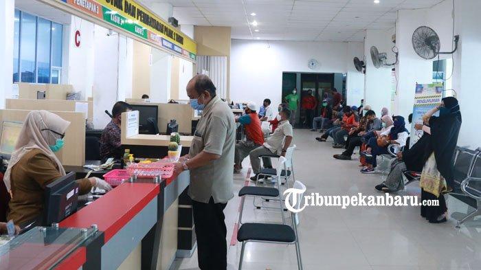 Sejumlah warga saat akan membayar pajak kendaraan di Kantor Samsat Simpang Tiga Pekanbaru.