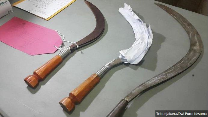 Tersangka berinisial AS (32) melakukan aksinya menggunakan celurit.