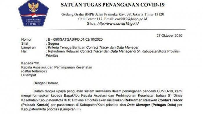 Satgas Covid-19 Buka Lowongan untuk Relawan Contact Tracer dan Data Manager di 51 kabupaten/kota