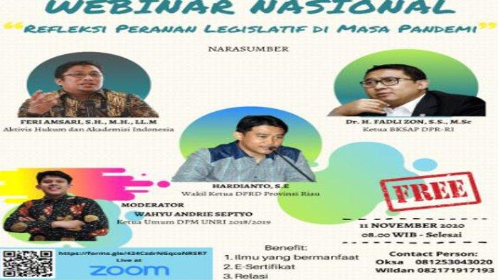 DPM Unri Taja Webinar Nasional Refleksi Peranan Legislatif pada Masa Pandemi, Hadirkan Fadli Zon