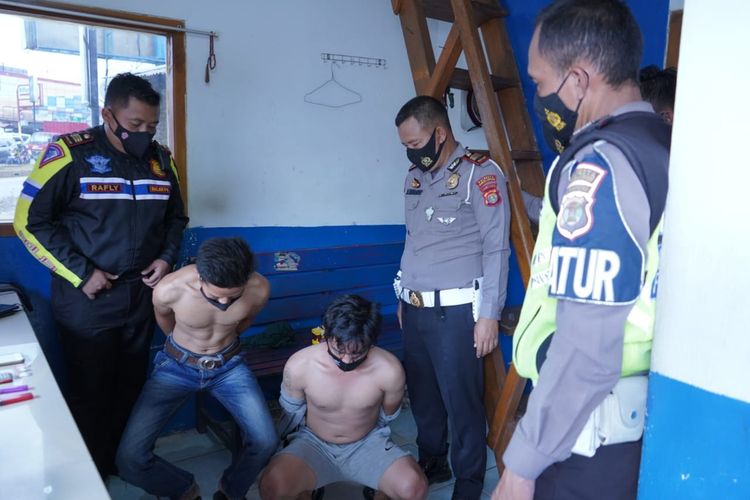 "Petugas mencoba menghentikan mereka (pelaku) karena ada pelanggaran lalu lintas yakni sepeda motornya tidak berpelat," kata Rafly.