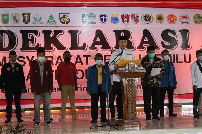 Usai deklarasi seluruh organisasi masyarakat dan organisasi kepemudaan bersama-sama menandatangani pernyataan.
