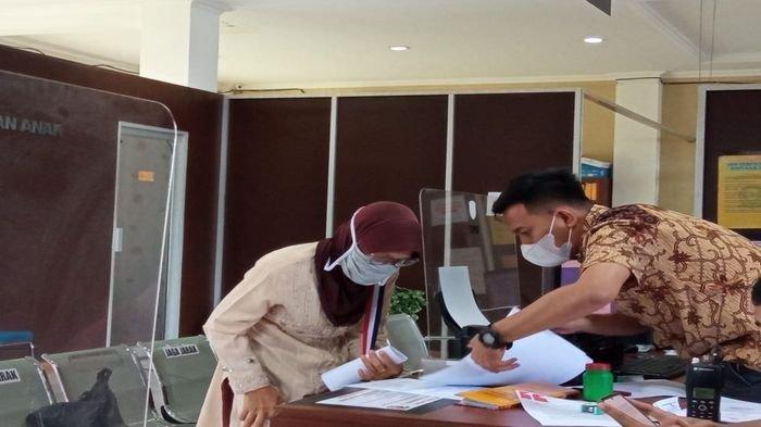 Mareta, seorang ibu di Palembang melaporkan anak kandungnya sendiri ke Polrestabes Palembang, Rabu (25/11/2020).