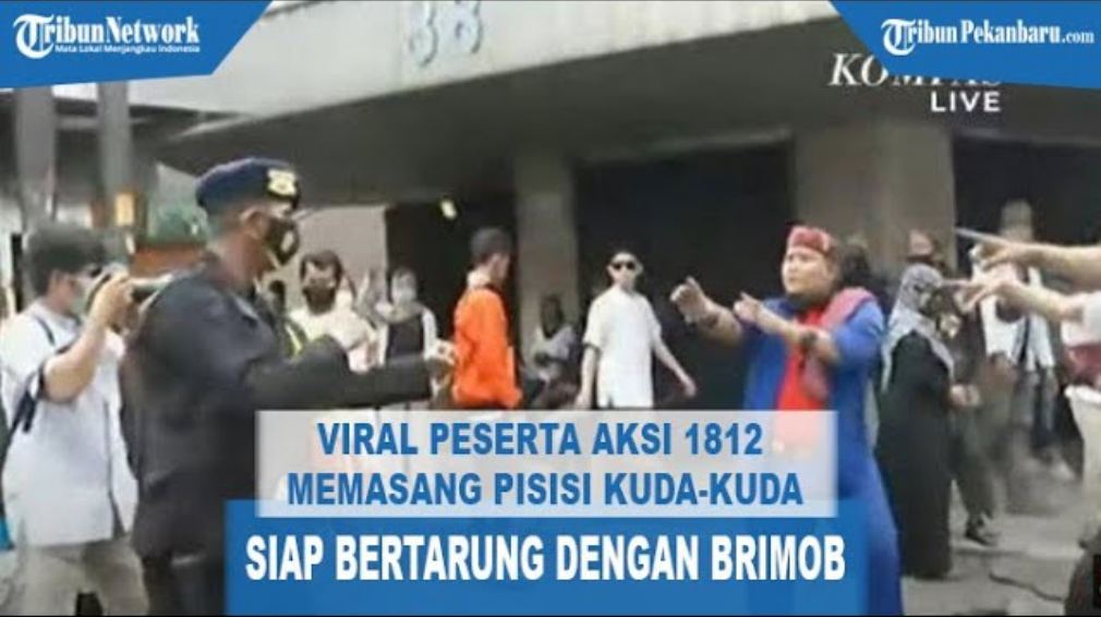 VIDEO: Viral Peserta Aksi 1812 Memasang Posisi Kuda-kuda Siap Bertarung dengan Brimob