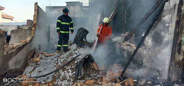 Menurut Kapolsek, kebakaran terjadi diduga disebabkan terjadi kebocoran gas elpiji penghuni rumah.