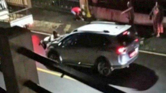 Wanita itu bahkan terseret mobil yang melaju dan membahayakan jika tidak segera ditolong warga yang datang berkerumun.