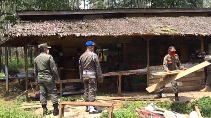 Warung kopi berkedok warung esek-esek di Jalan Lingkar Perkantoran Pemkab Banyuasin, tepatnya di simpang Lubuk Saung Kecamatan Banyuasin III, dibongkar paksa Satpol PP, Selasa (23/3/2021).
