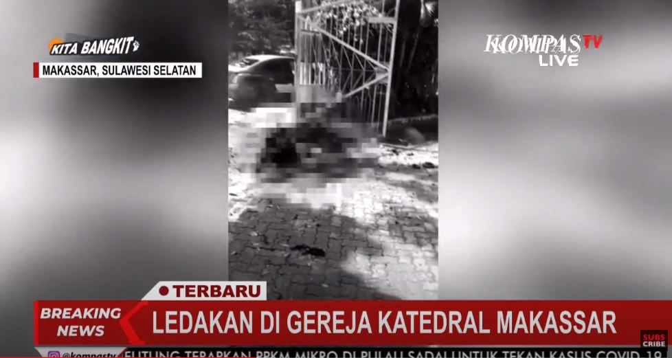 Beredar video Ledakan di Gereja Katerdral Makassar, menyebut terjadi ledakan disebut bom bunuh diri di depan Gereja Katedral Makassar, tepatnya di Jl Kajaolalido Makassar, Minggu (28/3/2021), pagi.