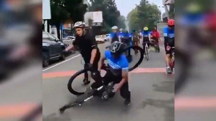 Dalam video amatir yang beredar, tampak dua orang pria naik sepeda berada di depan dari rombongan pesepeda lainnya.
