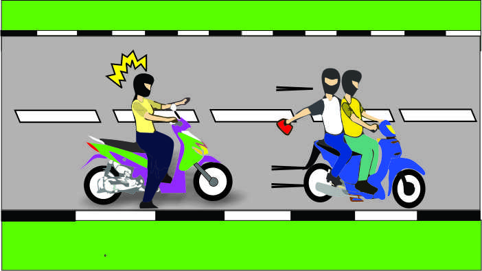 Tanpa basa-basi, secepat kilat pelaku penjambretan yang memakai sepeda motor tersebut merampas kalung yang digunakan oleh SD.