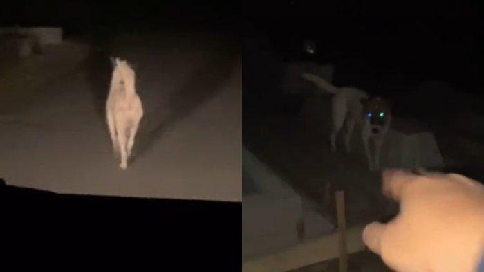Kebetulan agak gelap cuma pakai cahaya di HP. Udah depan mobil aja dia," tulis akun itu.