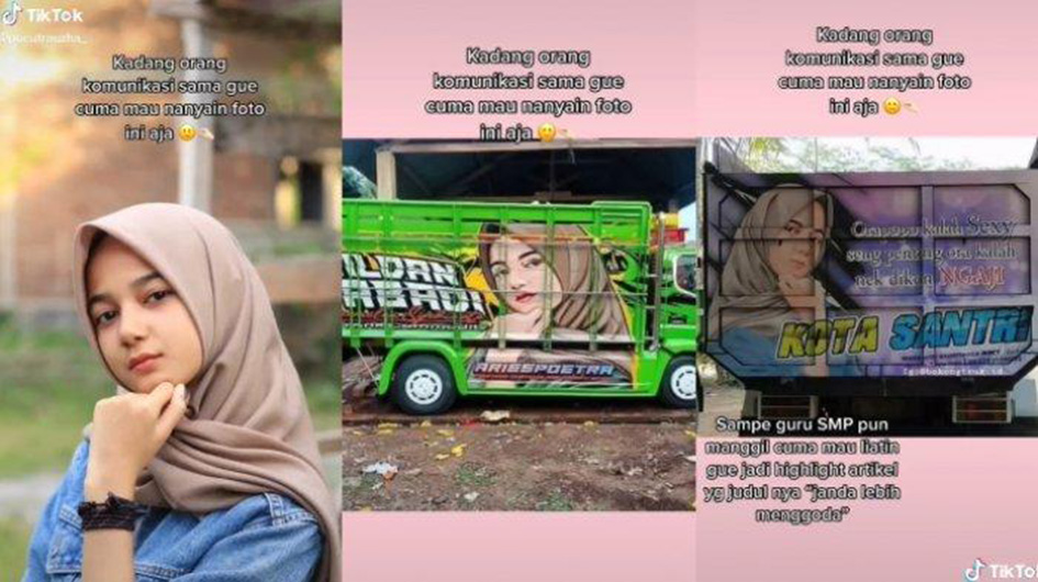 Dalam videonya itu, akun @pocutrauzha_ mengunggah curhatan tentang fotonya yang sering dipasang di body belakang truk.