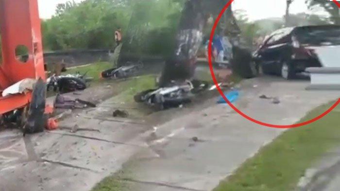 Diduga Sopir Ngantuk dan Lelah, Avanza Panjat Trotoar Lalu Tabrak 2 Motor & Petugas Kebersihan-VIDEO