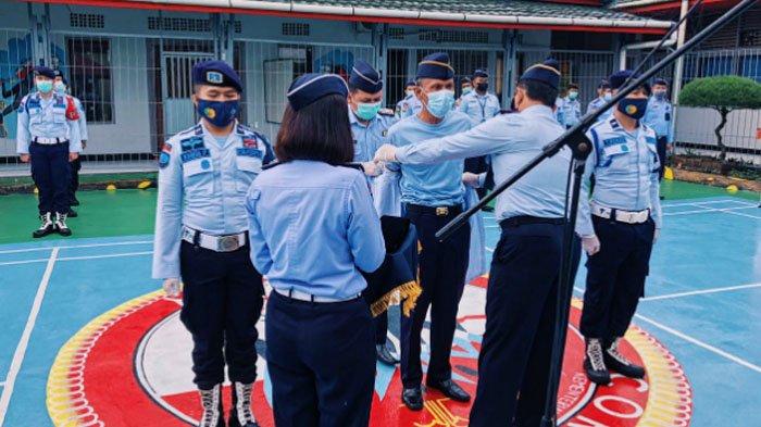 Seorang ASN berinisial H diberhentikan dalam upacara pemberhentian tidak dengan hormat sebagai ASN di lingkungan Lapas Tembilahan, Senin (31/5/21).