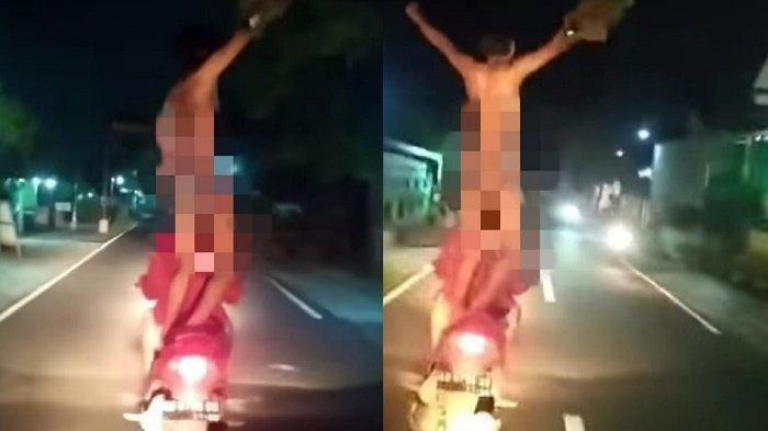 TRIBNPEKANBARU.com - Rekaman video aksi seorang pria melucuti pakaiannya hingga tanpa busana di atas sepeda motor dan keliling jalanan Kabupaten Klaten viral di media sosial, Selasa (1/6/2021).