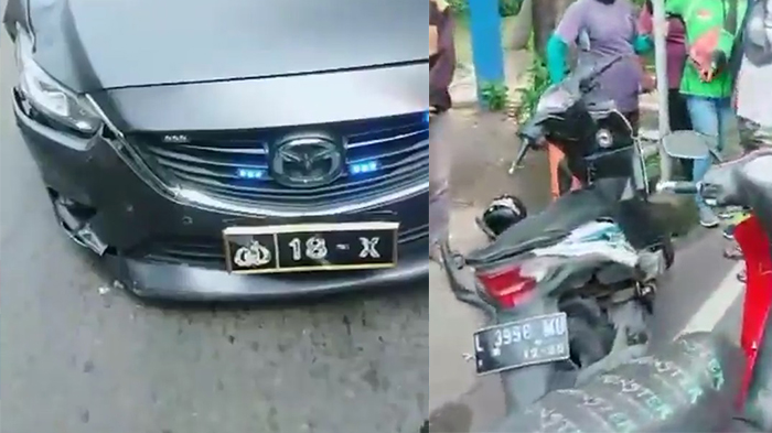 TRIBUNPEKANBARU.com - Viral kecelakaan mobil dinas perwira Polisi dengan nomor plat 18-X tabrak wanita pengendara motor di Surabaya.