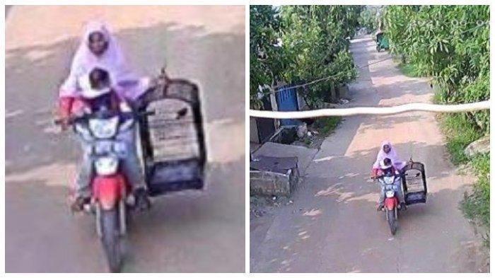 Dalam melancarkan aksinya, pelaku mengendarai sepeda motor sambil menggendong seorang balita.