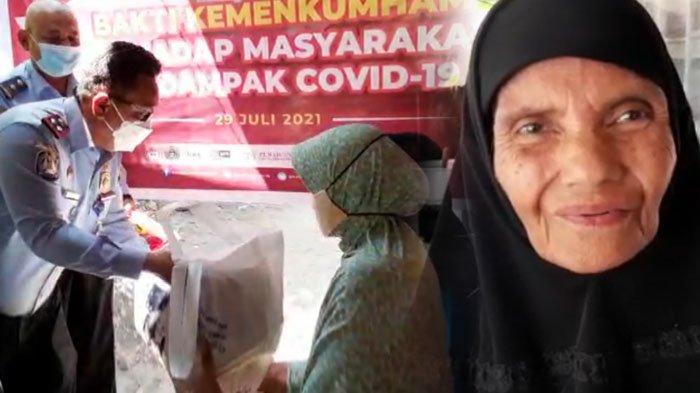 TRIBUNPEKANBARU.COM,PEKANBARU-- Nelwati tidak sanggup berkata usai menerima bantuan sembako dari Kantor Imigrasi Klas I TPI Pekanbaru, Kamis (29/7/2021).